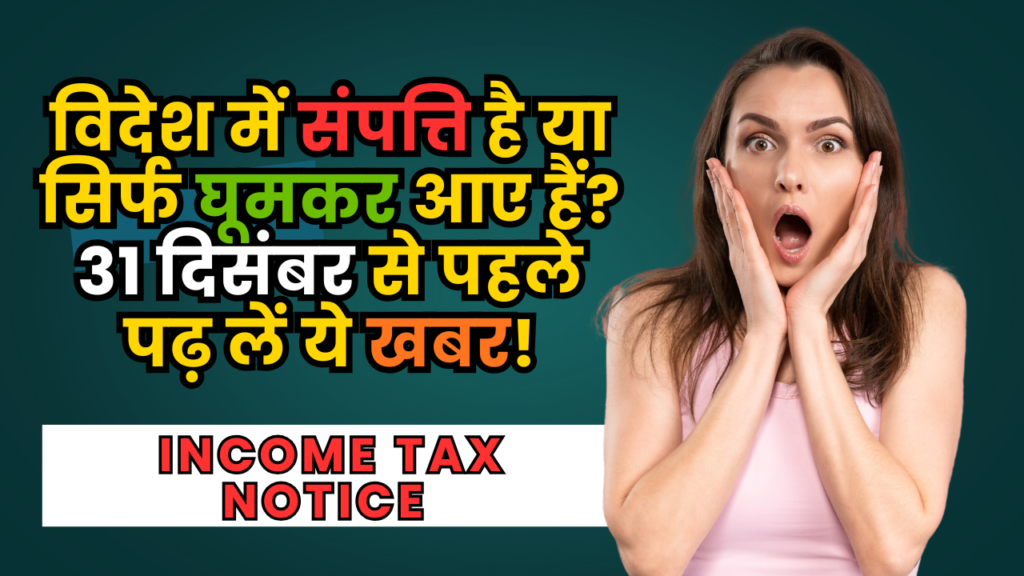 हाल ही में टाइम्स ऑफ इंडिया की एक रिपोर्ट ने तहलका मचा दिया है। इनकम टैक्स डिपार्टमेंट ने उन लोगों को “NUDGE 2.0” के तहत मैसेज और ईमेल भेजने शुरू कर दिए हैं, जिन्होंने विदेश में संपत्ति (Foreign Assets) रखी है या वहां से कमाई की है, लेकिन अपने टैक्स रिटर्न (ITR) में उसका जिक्र करना ‘भूल’ गए हैं।
